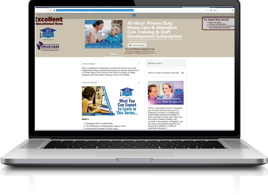 While this training has special elements for those in the Michigan Personal Injury Protection arena, its advice has applicability across jurisdictions. As an example, it includes all the 40-Hour curriculum requirements for Personal Home Care Services in the U.S. State of Georgia.